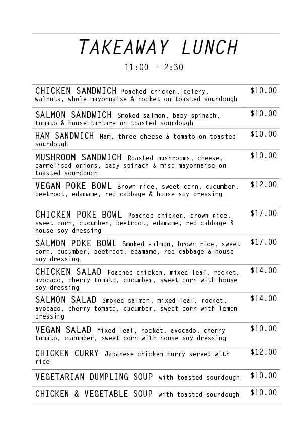 Take Away Menu